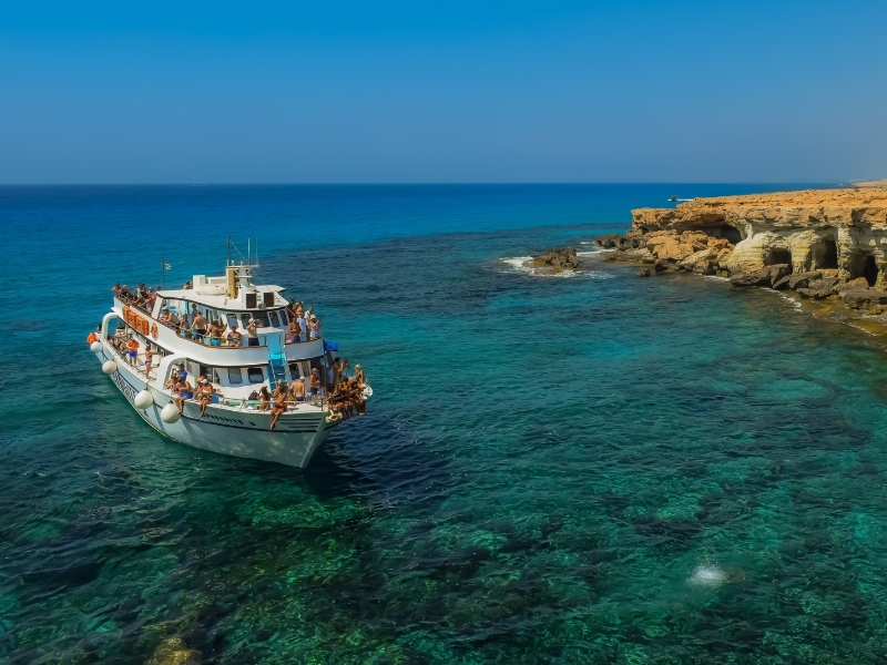 Během této ležérní plavby budete z lodi obdivovat mořské jeskyně a útesy Mysu Greko, pláže v Agia Napě a Protarasu. A dostanete se až k demarkační linii k městu Famagusta.