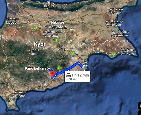 Ideální pro ty, kdo jsou ubytovaní v Larnace a okolí. Z Agia Napy nebo Protarasu počítejte 60 km navíc. Trasa zahrnuje nejzajímavější památky, přírodní krásy a tradiční vesnici.